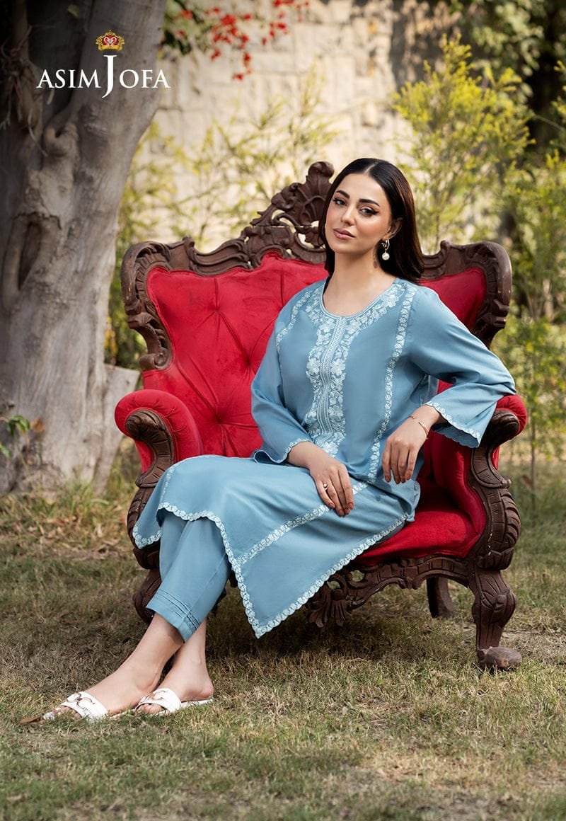 Step into timeless elegance with this beautifully designed 2-piece suit by Asim Jofa. Made from soft and breathable cambric fabric, the set includes a finely stitched shirt and trouser in a sophisticated blue shade. Perfect for daytime gatherings or effortless everyday style.